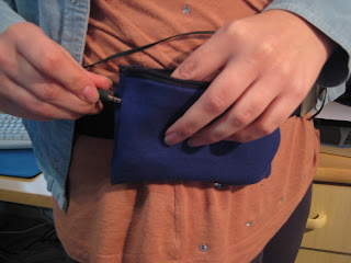 Kotona käydessään tyttäreni pyysi minua ompelemaan hänelle mittojen mukaisen pussukan, johon voi juostessa laittaa kännykän. Tuumasta toimeen. Kankaaksi valittiin napakka sininen puuvillakangas. Tytär halusi kuviopuolen piiloon, eli nurjaksi puoleksi.