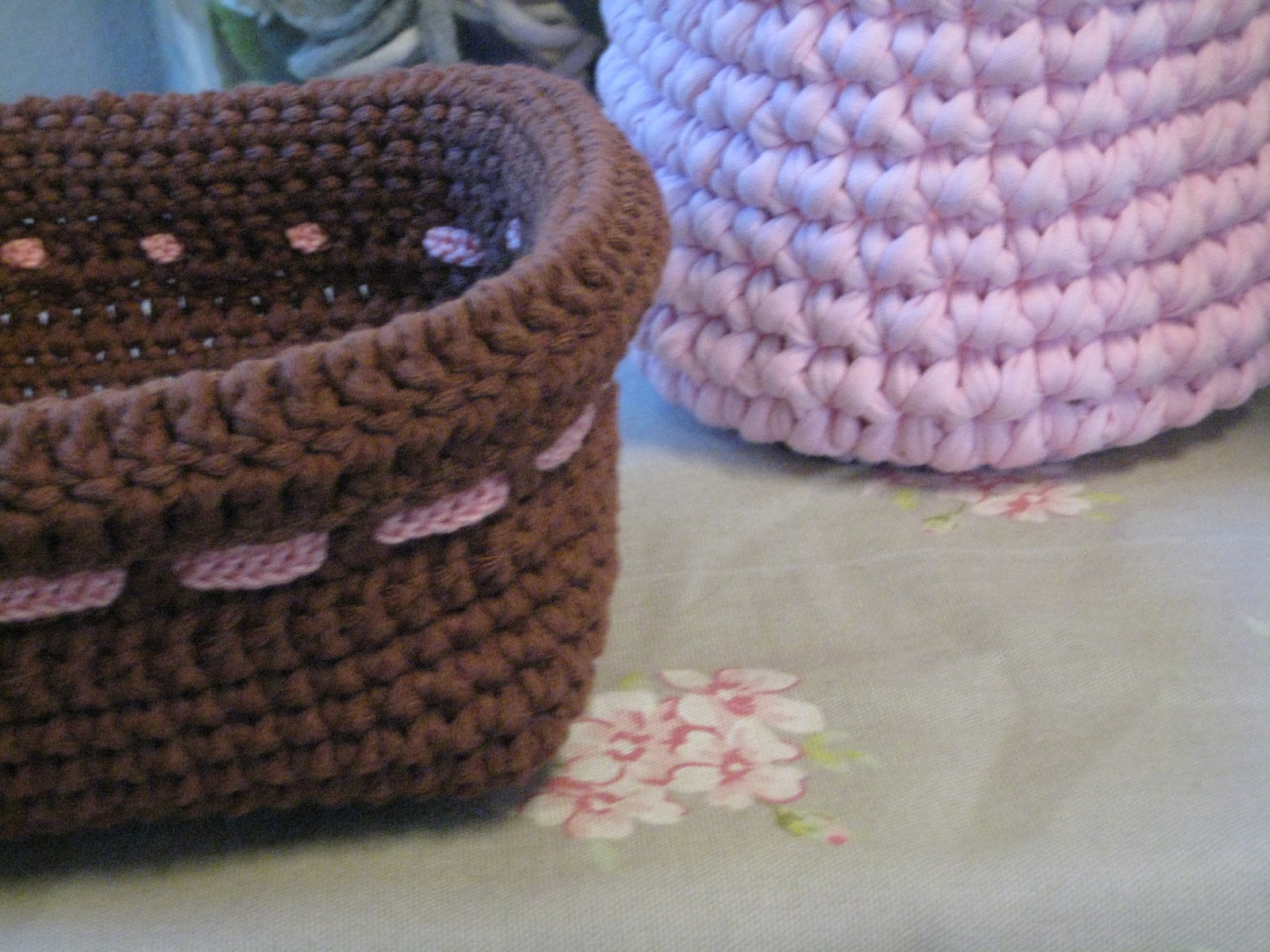 Eipä ollut kovin kummosia kuvia. Yksi pannunalunen, mutta näytän sen, jahka ehdin tehdä siihen ohjeen ja sitten oli tällaisia kuvia putiikista. Kolme koria soinnutettuna vaaleanpunaiseen: