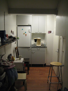 Tuohon keittön käytävälle tahtoo kertyä myös kaikenlaista epämääräistä. Olen nyt yrittänyt noudattaa sääntöä ”tuo tullessas, vie mennessäs”. Aina kun kuljen tästä ohi, yritän jonkun tavaran kuljettaa oikeampaan paikkaansa. Nämä huoneet sijaitsevat niin, että koko huushollin pääsee kiertämään ympyrää. Joskus joku asiakaskin ”eksyy” näihin takahuoneisiin ja sitten tuntuu hassulta, kun hän tuleekin aivan toisesta suunnasta, kuin mihin näin hänen lähtevän. Joskus kyllä vähän ihmettelen näitä harhailijoita, kun on nämä takahuoneet kyllä selvästi henkilökunnan tiloja eikä myymälää….