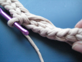 Sitten virkataan PIILOSILMUKOITA koko rivi niin, että koukulle otetaan vain yksi lanka ketjusilmukasta.