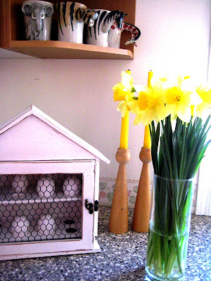 Ainut toivo, että saisin jotain aikaiseksi, on silloin kun olen yksin kotona. Mutta ei sekään ole varmaa. Ilmeisesti siitä johtuen, että putiikissa saan valmistella juhlapäiviä pitkän aikaa, en kotona jaksa/halua/viitsi tehdä enää samaa toista kertaa. Siispä meidän pääsiäiseen viittaava oli tässä: