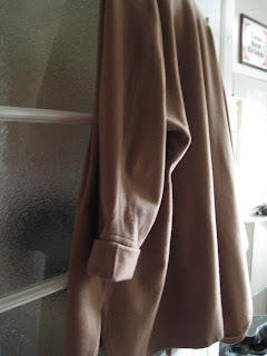 Tässä kuvassa on vähän sitä, mitä olen viime päivät pohtinut. Minulla on vanha, kirppikseltä ostettu laadukas villakangastakki, joka on jo monta vuotta palvellut. Olen jopa tehnyt sen kaavoilla kaksi muutakin takkia. Nyt takkiin on tullut reikä – taakse juuri pepun kohdalle.