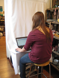 Koska opinnot ovat voiton puolella ja Mirvalla on toukokuu aikaa ennen töiden alkua, ehtii hän tehdä äidille verkkokaupan. Putiikkiin perustettiin kuvausstudio = lakana seinälle. Ihan hirvee homma kuvata jok’ikinen tavara! Mikä ei siis suinkaan tarkoita sitä, että kaikki Pellavsydämen putiikissa on myös verkkokaupassa, mutta silti paljon tuotteita.