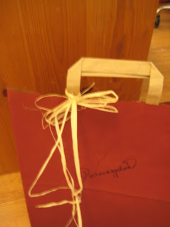 Kun aloitimme putiikin pitämisen, yksi ehdoton vaatimus oli, ettei meillä käytetä muovipusseja. Eikä kyllä oikein mitään muutakaan muovista, mieluummin. Eikä myöskään kiiltäviä lahjanaruja. Kun aloin myydä käsityötarvikkeita, tulivat muovipussit kuvioihin, vähän niinkuin pakon sanelemana.