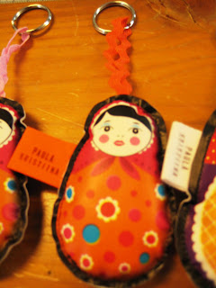 Lopuksi pari epäonnistunutta kuvaa uusista tuotteista. PaulaKristiina poikkesi mökkireissullaan ja toi valmistamiaan maatuska-avaimenperiä myyntiin. Nämä on valmistettu vahakankaasta, joten ovat pyyhittävissä puhtaaksi.