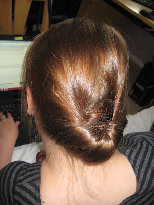 Mirva oli tehnyt klassisen kauniin nutturan, joka oli pakko kuvata. Kylläpä hiusten väri vaihtelee jos on salama käytössä tai ei!