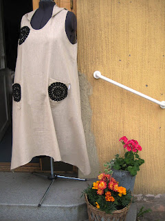 Tänään minulla on taas vapaapäivä ja ihana Pirkko uurastaa putiikissa. Menin viemään muutamat valmistuneet trikoohousut myyntiin, kun huomasin, että ulkokukkaset loistavat poissaolollaan. Toivorikkaana menin sisälle – jospa sittenkin Pirkko olisi nostanut ne sateen suojaan.