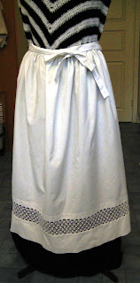 Viime yönä sain valmiiksi hamoset ja essut, joiden piti tänään lähteä matkaan, mutta eipä niitä kukaan kysellyt…Jonkinlaiseksi roolivaatteeksi oli tarkoitus tulla musta täyspitkä hame ja siihen essu, molemmat vanhaan tyyliin. Näitä molempia tilattiin kahdet kappaleet. Hameet tein pellavasta, toinen paksusta ja toinen pellavasekoitteesta, joka on ohuempi ja kevyempi. Essut ovat vanhoista lakanoista, joissa on käsin virkatut välipitsit.