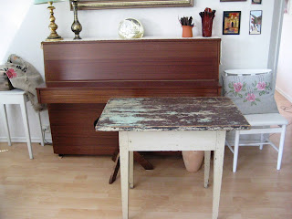 Pöytä on aika korkea, enkä ole sille vielä keksinyt paikkaa – tiedän, että mieheni ei haluaisi sitä ollenkaan, mutta muistattehan – hänellä ei ole valtaa sisällä tapahtuvaan sisustukseen. Minä määrään sisällä, hän ulkona puutarhassa. Hahhaa! On se vaan hassua, miten eri silmällä me ihmiset katsomme maailmaa. Vaikka meillä aika monessa asiassa on samanlainen maku, niin näissä vanhoissa esineissä ne eivät kohtaa ollenkaan!