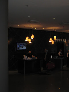 Hotellin aulassa oli tällaiset jalkalamput ja allaolevat lamput tiskin yläpuolella: