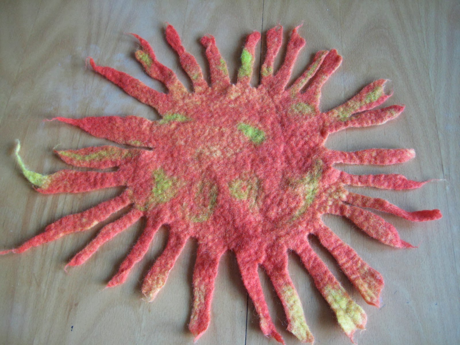 Kuten jo kerroinkin, ilmoittauduin useammalle kansalaisopiston käsityökurssille. Ensimmäinen, korukurssi, jo peruttiinkin vähäisen osallistujamäärän vuoksi. Huovutuskurssi alkoi tutustumisjaksolla tällä viikolla. Varsinainen työ tehdään tulevana viikonloppuna, mutta nyt jo pääsimme vähän harjoittelemaan.
