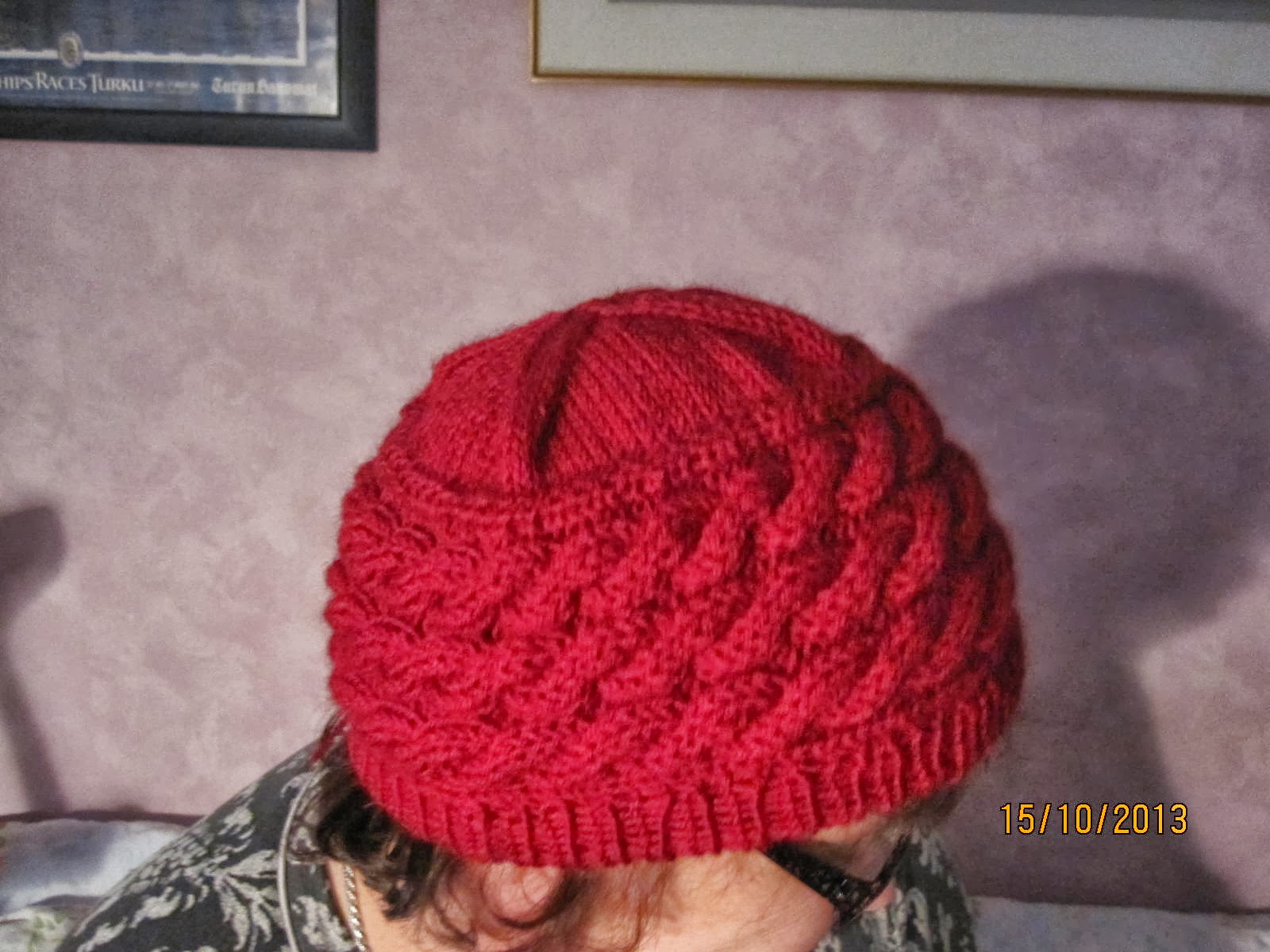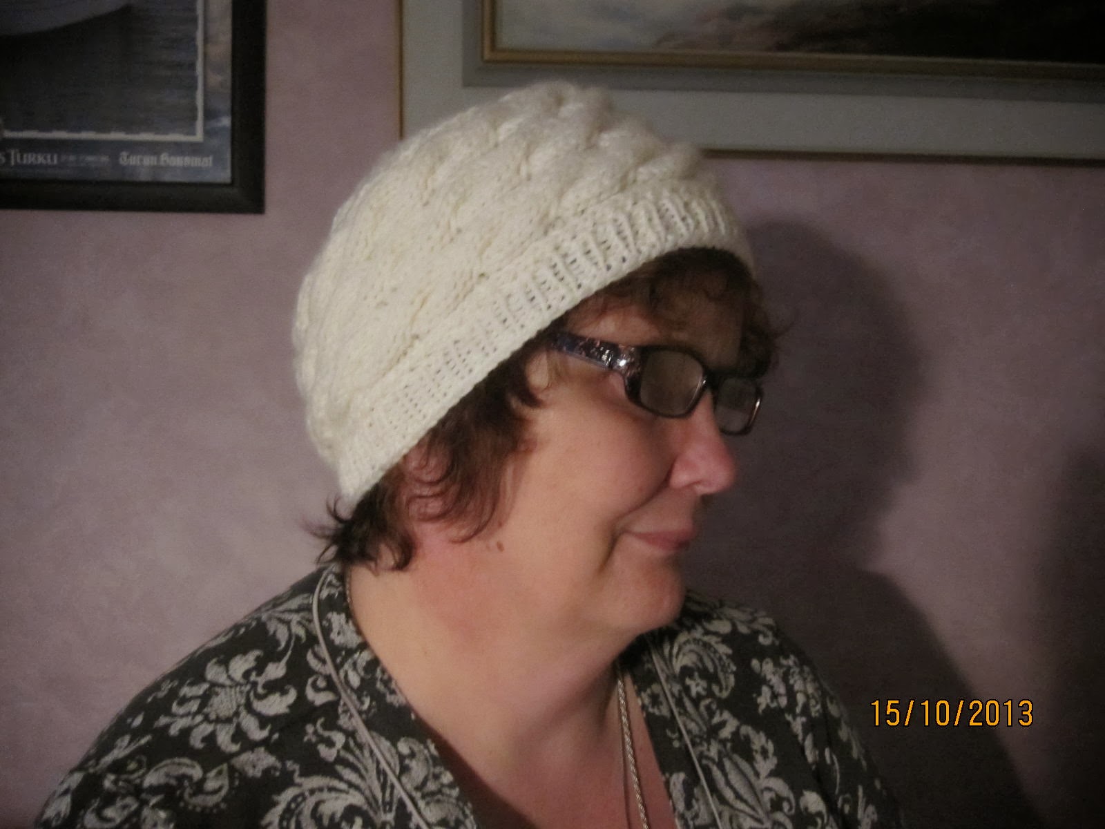 Meidän suvussa on kaikilla kovin iso pää – ympärysmitta noin 60 cm. Usein tekemäni hatut, lakit ja myssyt ovatkin liian isoja, kun teen itselleni sovittaen. Sensijaan nämä pipot ovat minulle kylläkin just sopivia, mutta mielestäni saisivat olla keskiosastaan vähän isompia, jottei menisi noin pitkin päätä. Mutta itsellenihän näitä en olekaan tehnyt. En pidä koskaan mitään päässä. Nämä laitetaan myyntiin.