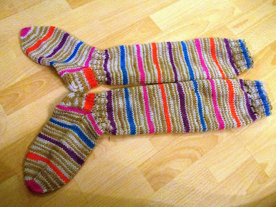 Tässä aikaansaannoksiani. Sukat, jotka juuri päättelin.