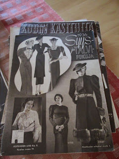 Vanhoja Kotiliesi -lehtiä 30- ja 40-luvulta sekä todella vanhoja käsityölehtiä. Aarteita. Nämä ovat niin vanhoja, että värejä ei juurikaan ole ollut käytössä, mutta ovat mustavalkoisinakin aivan hurmaavia.
