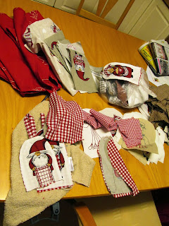 Putiikin työhuoneen hyllyjä tyhjentäessäni löysin keskeneräisiä jouluisia töitä. Päätin tehdä nämä loppuun. Näppipyyhkeet myytiinkin jo kaikki, joten huomenna vien putiikkiin täydennystä.