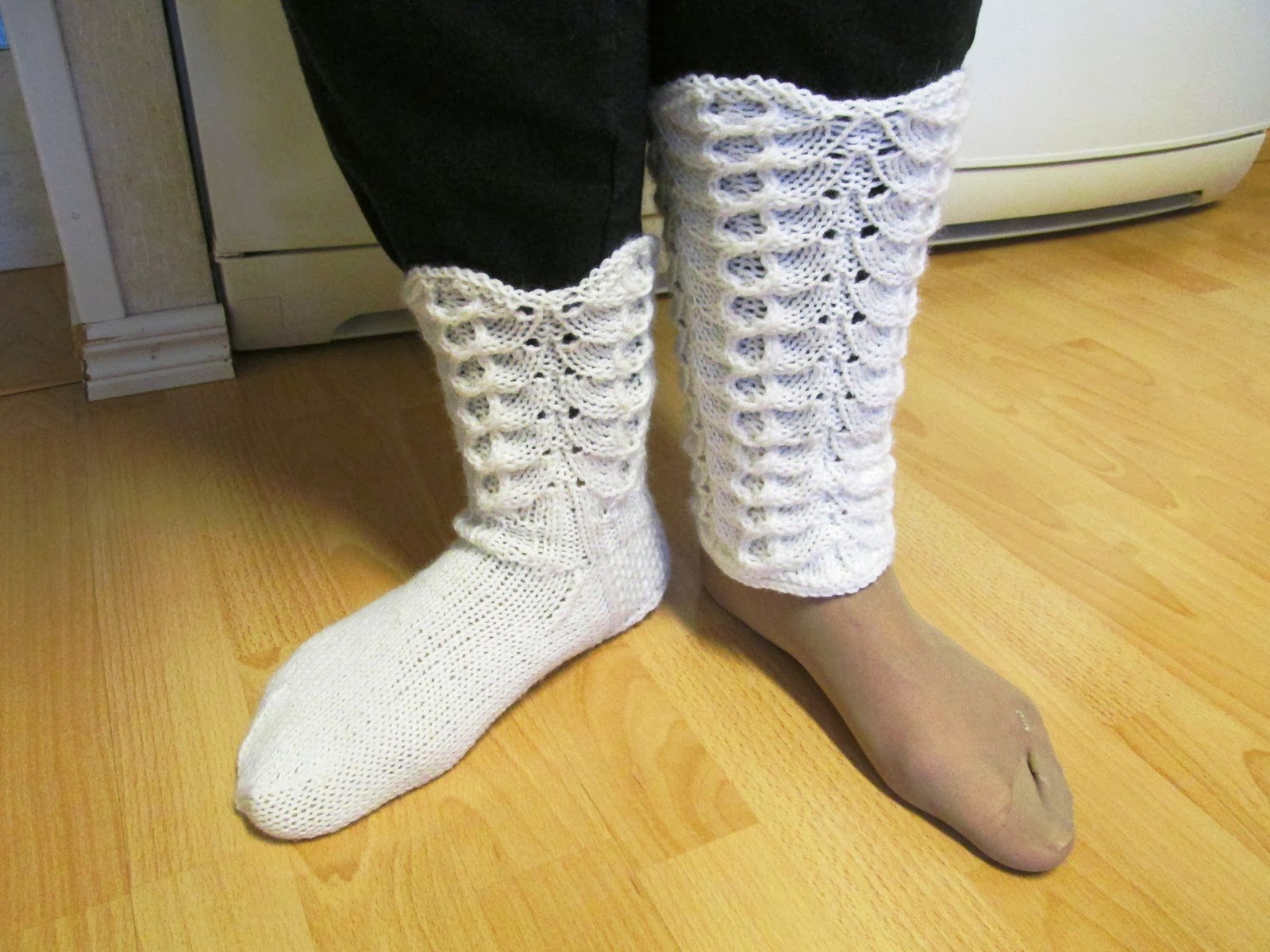 Tässä tulee kuva uudesta sukkamallista. Kehitelty eilen. Säärystin on sama vanha, jonka kuvan jo kerran näytinkin.