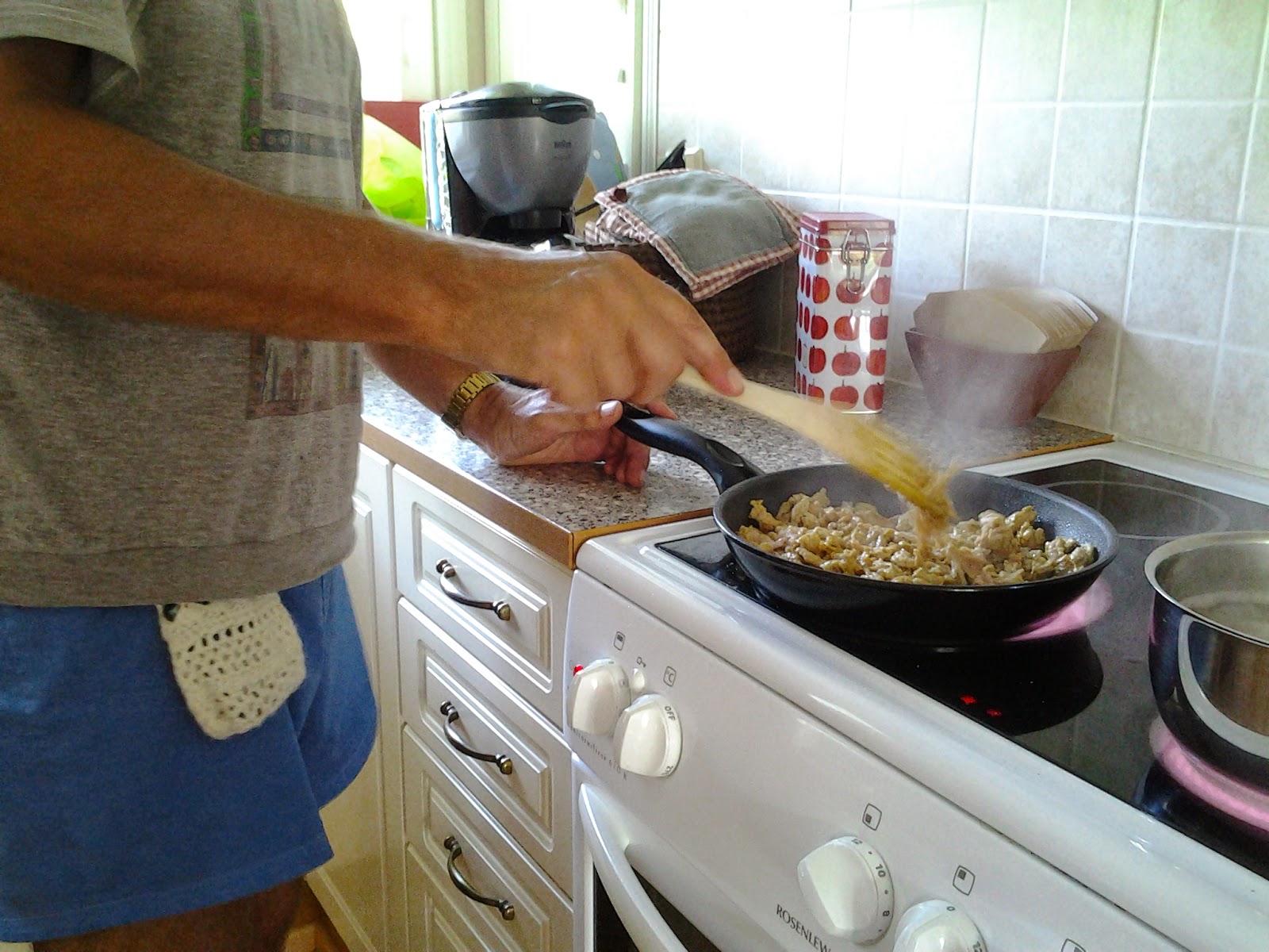 Olen vakuutellut miehelleni, että aina pitää olla kännykkä mukana. Tässä oli hänen vastauksensa huutooni. Sen sijaan ei ole mitenkään epämiehekästä, että mies häärii keittiössä ja laittaa vaimolleen ruokaa.