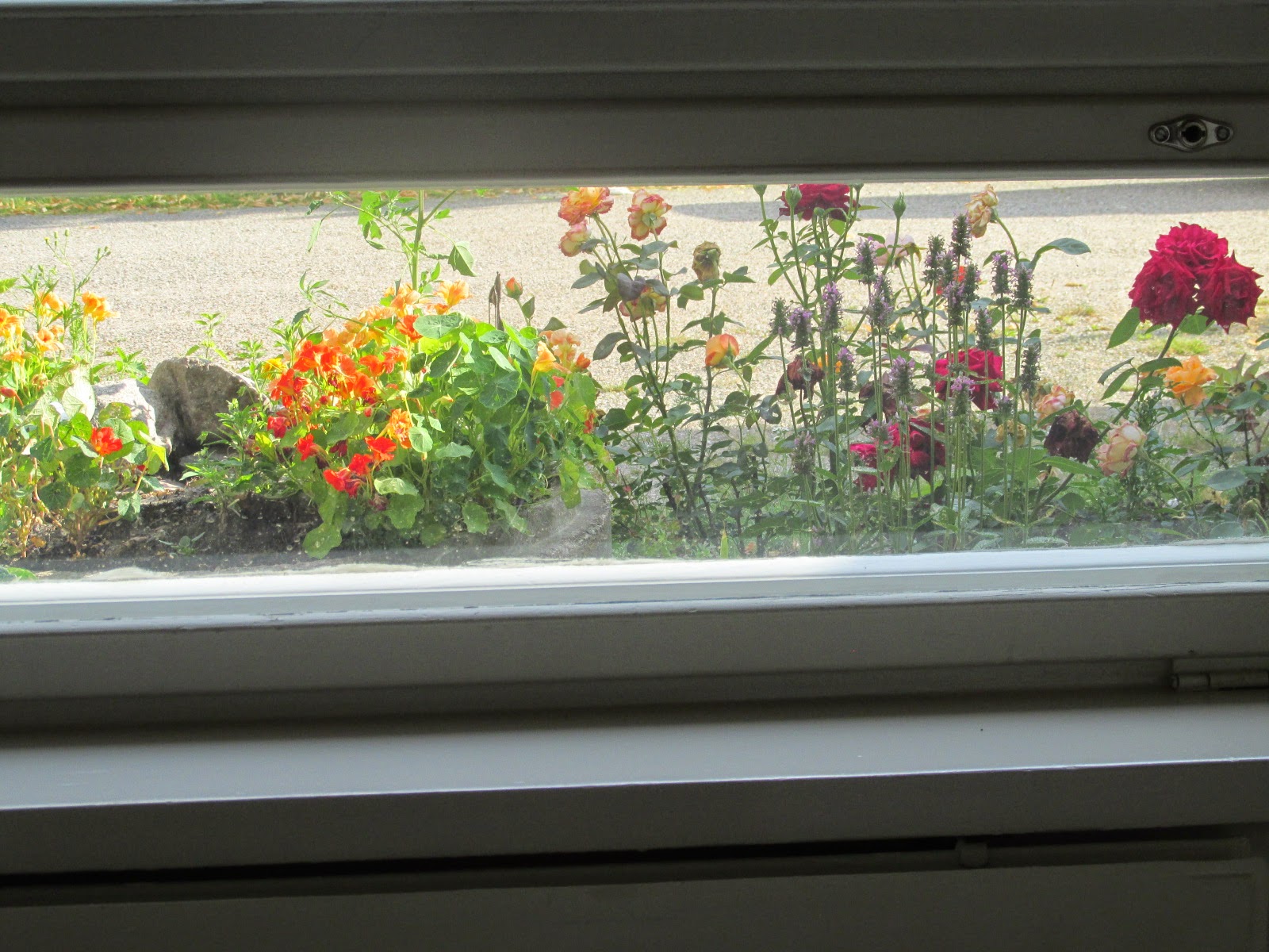 Tässä olemme siis uuden talon pihalla ja takanani on kukkapenkki, johonka mieheni on jo ehtinyt ruusuja istuttaa.