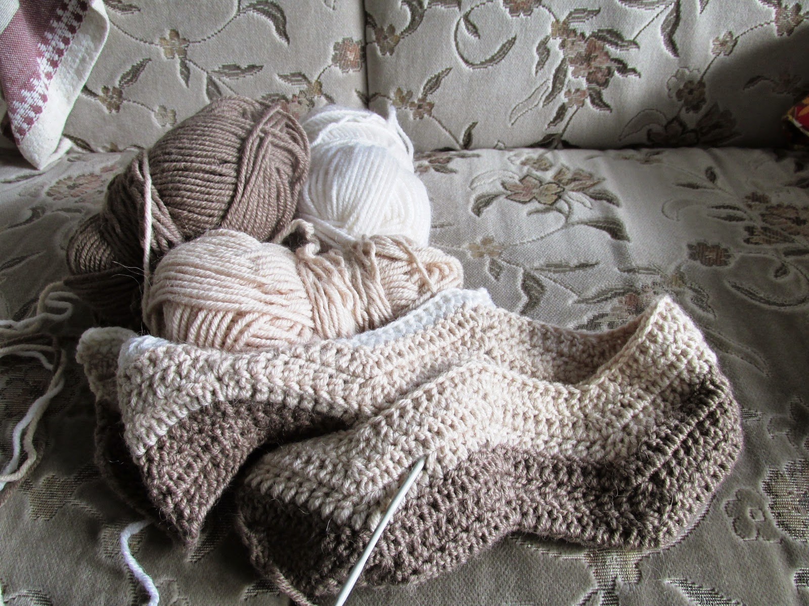 Kaksi käsityötä on kuitenkin nyt aloitettuna ja tässä niistä toinen. Tähänkin työhön sain innoistuksen facebookin virkkaus-ryhmästä. ”Kaikki” tekee nyt torkkupeittoja – joko isoäidin neliöistä tai tällaista siksakkia. Koska noissa neliöissä on niin kovasti lankojen päättelyä, valitsin tämän. Onkin todella helppo malli, saattaa käydä jopa yksitoikkoiseksi.
