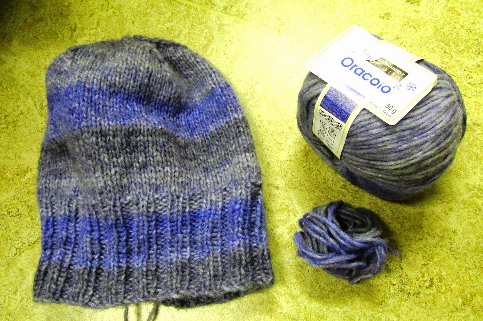 Ennen joulua – muuttosiivouksessa – löytyi keskeneräisistä töistä tällainen. Ehkä on ollut tarkoitus tulla myssy, mutta on lanka tai kiinnostus loppunut kesken. Harvinaisen paksua lankaa, eikä mitään muistikuvaa, minkä merkkistä. Päättelin työn ja päätin, että siitä oli tarkoituskin tulla panta. Sattui olemaan minun päähäni oikein loistavasti sopiva. Tiukka, muttei liian – lämmittää korvia mukavasti. Huono puoli on tuo väri, ei sovi minun muutenkin kalpeaan naamaani, mutta ehkä jollekin toiselle….