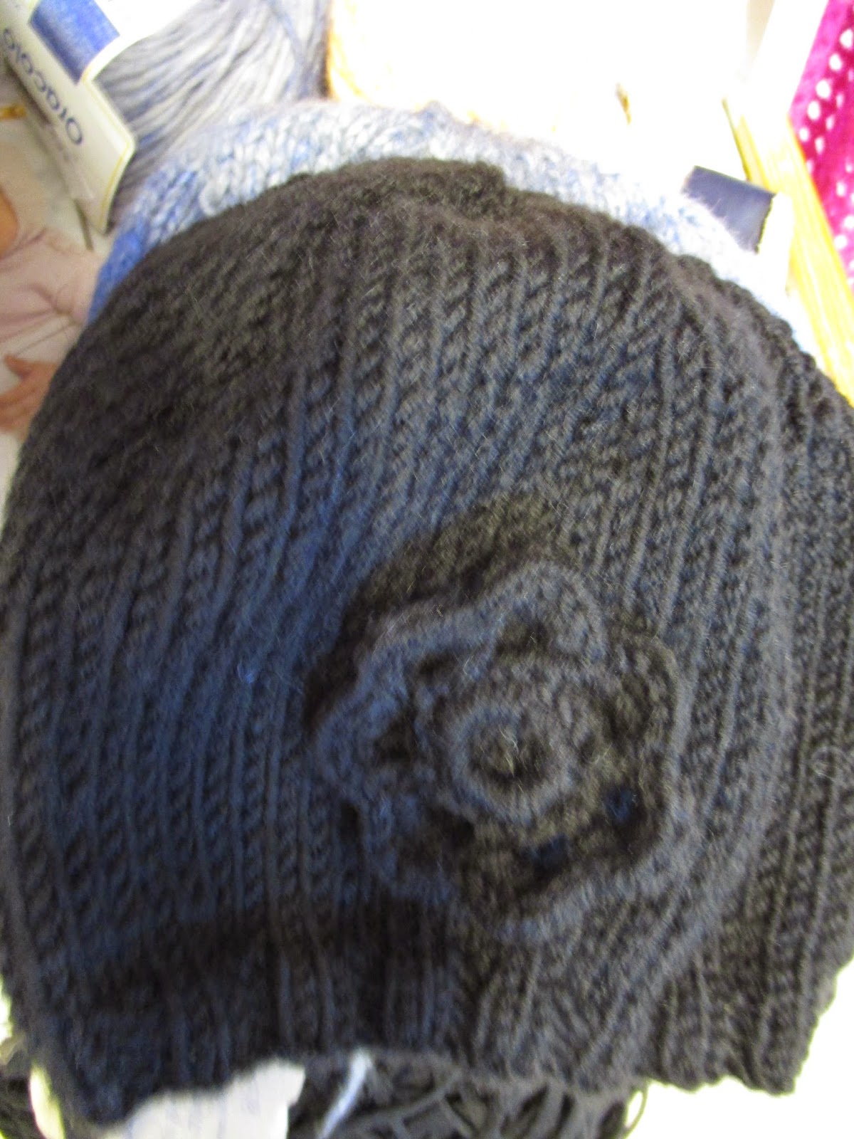 Musta pipo on neulottu paksuhkosta Alpaca Gold -langasta, joka on 20 % Alpakkaa, 20 % villaa ja 60 % akryyliä. Tämän olisi voinut neuloa oikein isoilla puikoilla, jolloin tulos olisi ollut pehmeämpi. Mukava lanka.
