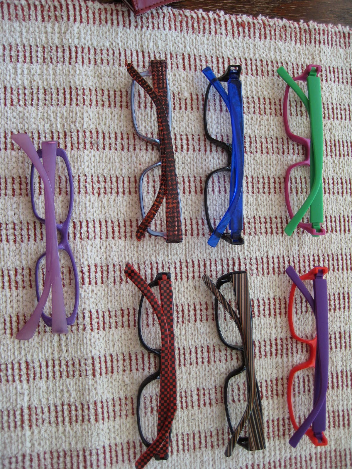 En tiedä, mikä hulluus muhun tänään iski. Kävin Talouspörssistä ostamassa narsisseja – ja samalla paljon muutakin. Eksyin lukulasien hyllylle ja valitsin yhdet. Sitten toiset, sitten kolmannet, neljännet – kaikkiaan seitsemät lasit! Valitsin kaikki ne värit, mitkä hiukankin sopivat garderoobiini. Eikös vainenkin silmälasit kuulu valita vaatteitten värin mukaan. Kyllä.