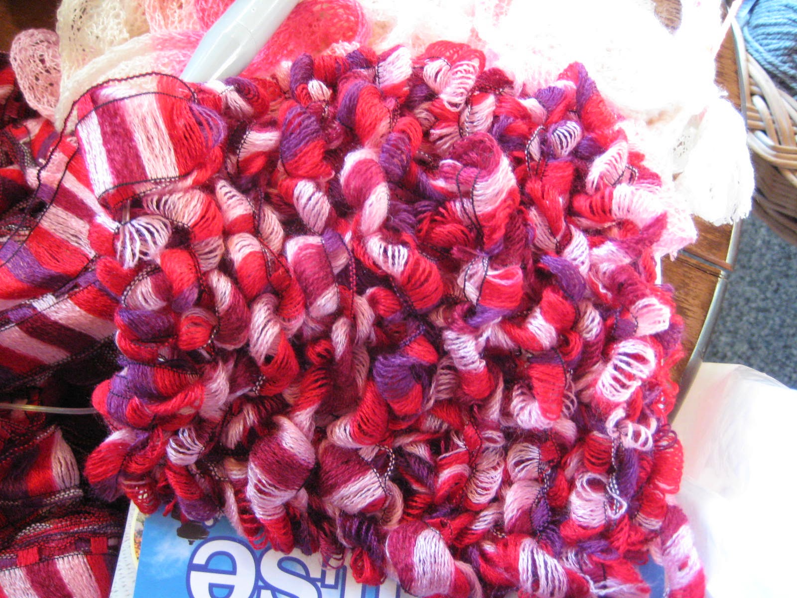 Intouduin kokeilemaan myös toisentyyppisestä röyhelöhuivilangasta – mitä siitä saisi? No, ainakin toisenlaista röyhelöhuivia, hih! Neuloin tämänkin isoilla, numeron 15 pyöröpuikoilla ja yritin tehdä isoja silmukoita. Aika hauskaa pintaa syntyy… ja nopeasti.