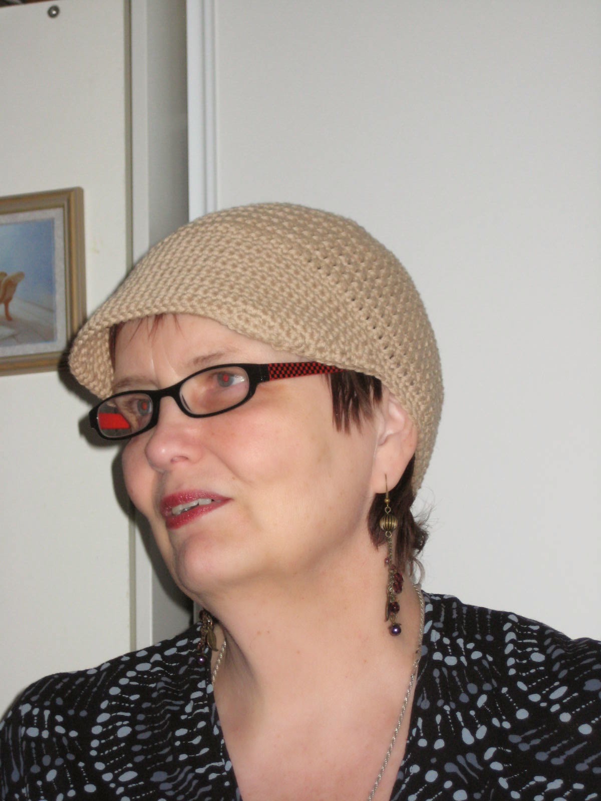 Virkkasinpa lippapipon. Lankana puuvillalanka Rozetti Naturel Cotton. Erittäin kiva lanka myös virkkaukseen. Mallin tein ”omasta päästä” omaan päähän sovittaen. Kypäräosa on pylväitä ja lippa kiinteitä silmukoita.
