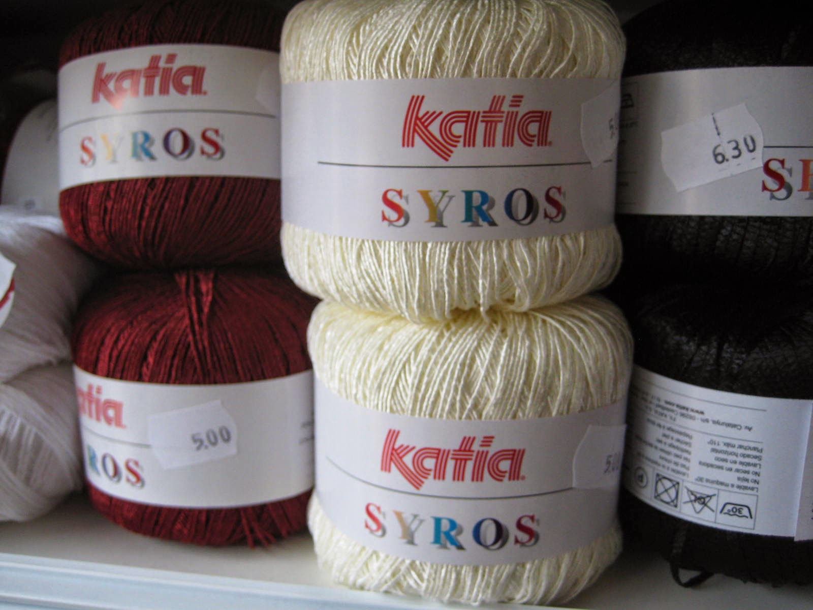 Syros ja Sevilla ovat keinokuitulankoja, joita tilasin varta vasten tölkkinipsutöitä varten.