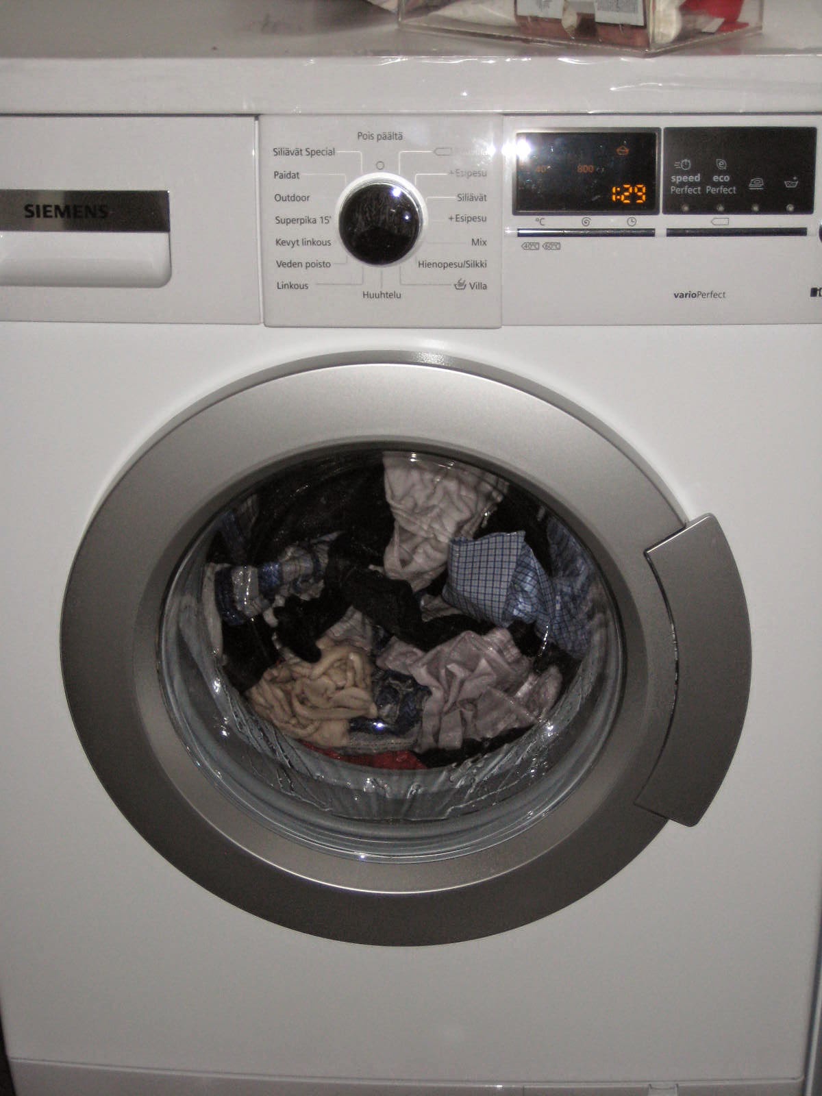 Jaahas, mun uusi pesukone on näköjään äänekäs. Se ilmoittaa piippaamalla, että pesuohjelma on tullut valmiiksi. Ärsyttävää! Kuka on päättänyt, että pyykit pitää HETI tyhjentää koneesta? Ei tuollaista piipitystä ainakaan voi kuunnella. Pitää siis mennä siirtämään pyykit kuivausrumpuun.