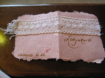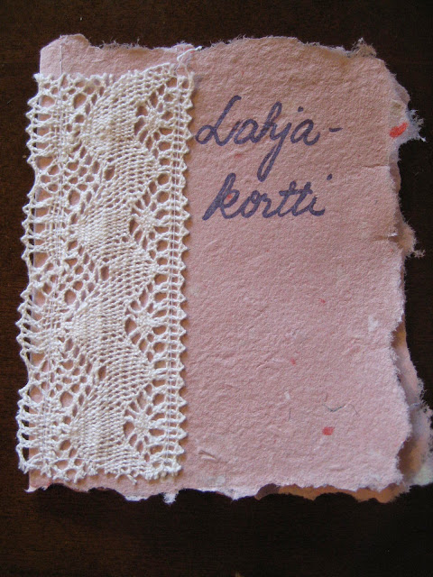 Äitienpäiväksi väsäsin muutaman Pellavasydämen näköisen lahjakortin. Paperin olen itse tehnyt.