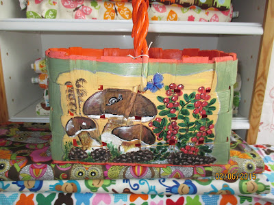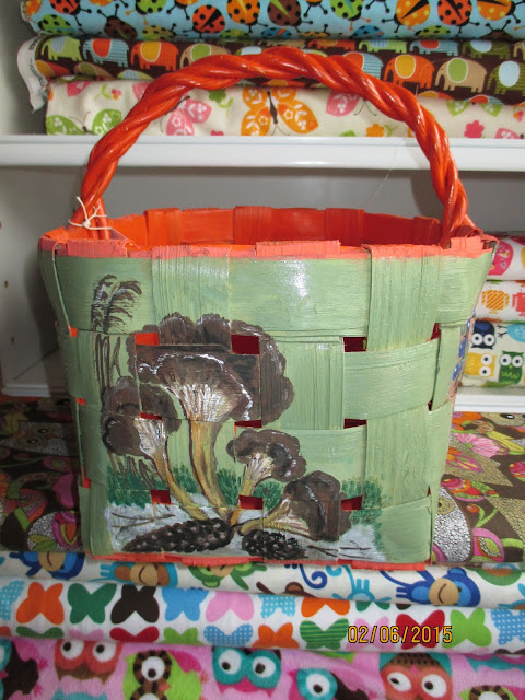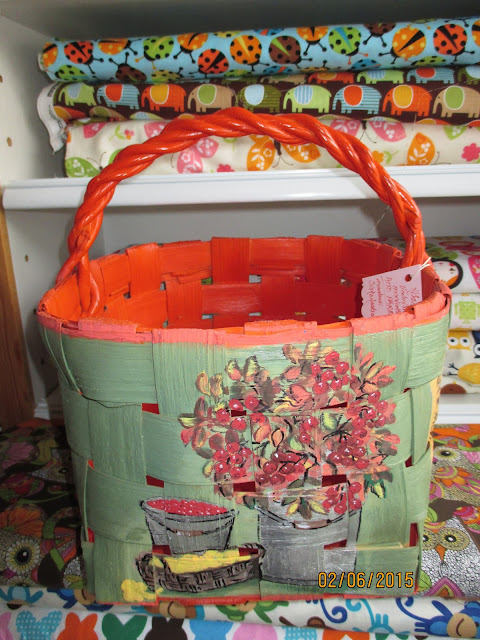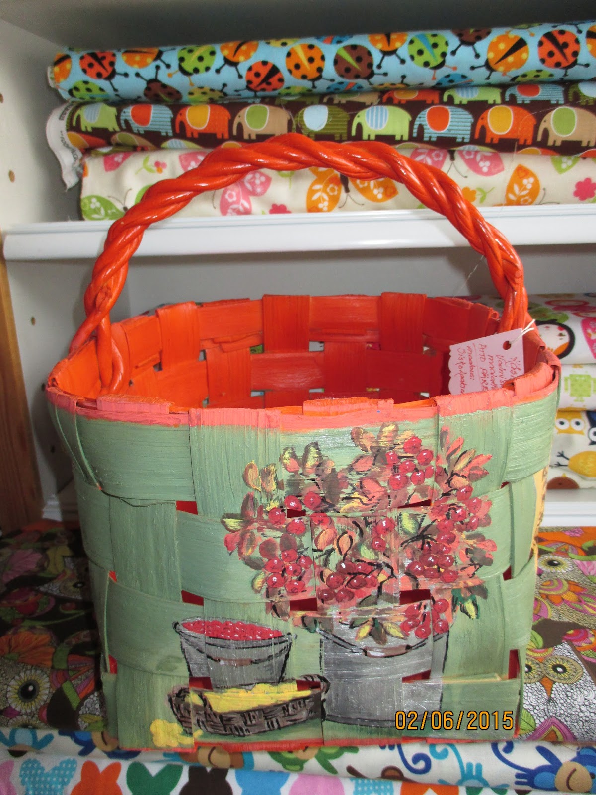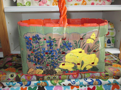 Samalla istumalla myin myös yhden maalatun kauppakorin. Taas satuin olemaan paikalla (facebookissa), kun joku sellaista kysyi. Itseasiassa korin osti toinen, sivusta keskustelua seurannut. Kyllä netissä roikkuminen kannattaa!