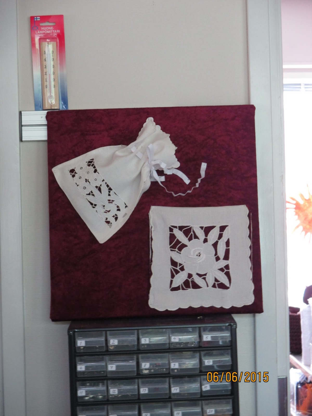 Pyörittelin paria isoäidiltä perimääni antiikkitekstiiliä käsissäni. En tahtoisi niistä luopua, mutta mitä ihmettä teksisin, mihin säilöisin? Silitin ne ja ihailin vielä huolellisuutta, jolla työt on tehty nautittavaksi, mutta myös kestämään aikaa.