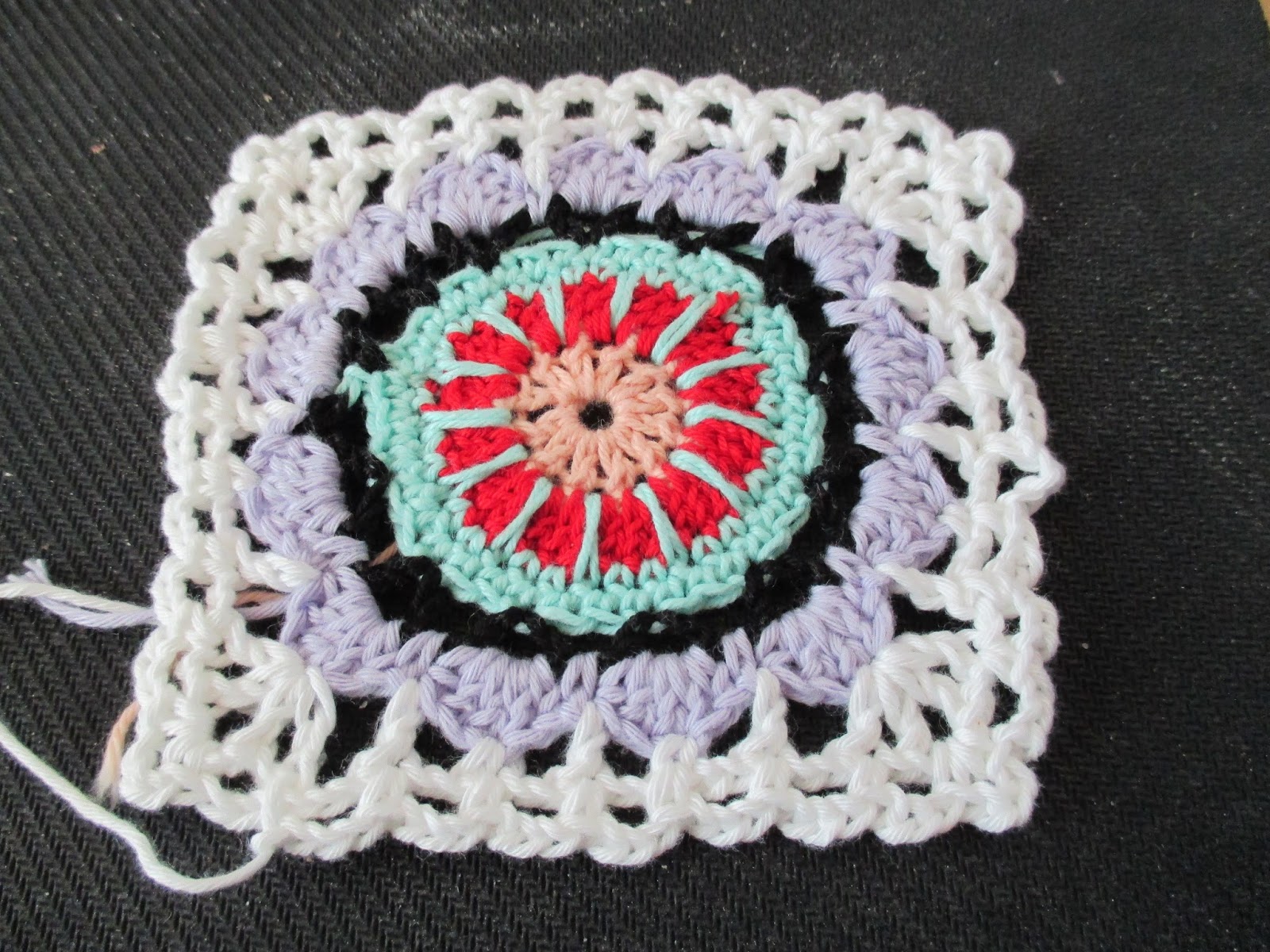 Vähän työläitä tuollaiset jatkuvasti väriä vaihtavat ovat, kun jää liian paljon pääteltäviä langanpätkiä. Jollei sitten muista niitä sitä mukaa virkata seuraavan kerroksen sisään. Yksi ”ongelma” tähän jäi – missä ihmeessä se ohje oli, kun en sitä kerran laittanut talteen?