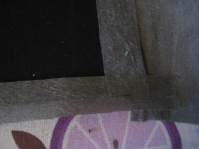 Ensin yritin päästä helpolla. Käänsin kuvasta reunat ja ompelin tikkauksen. Noeihän se onnistunut, trikoo kulki edellä ja tikkauksesta tuli epätasainen. Ei kun purkuun! Sitten hidastin tahtia ja päätin tehdä työn oikein huolellisesti. Kiinnitin kuvan takapuolelle ensin ohuen joustavan kovikekankaan. Reunoihin silitin kovikenauhaa.