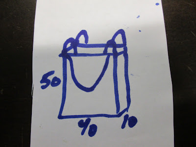 Sain asiakkaalta tilauksen kassista, johon mahtuu viikon ruokaostokset ja jota voi kuljettaa pyörätuolin takana. Ilmeisesti tällaisia ei ole kovin paljon – jos ollenkaan – myynnissä, koska en löytänyt netistä yhtään kuvaa. Suunnittelin mallin saamieni mittojen mukaisesti.