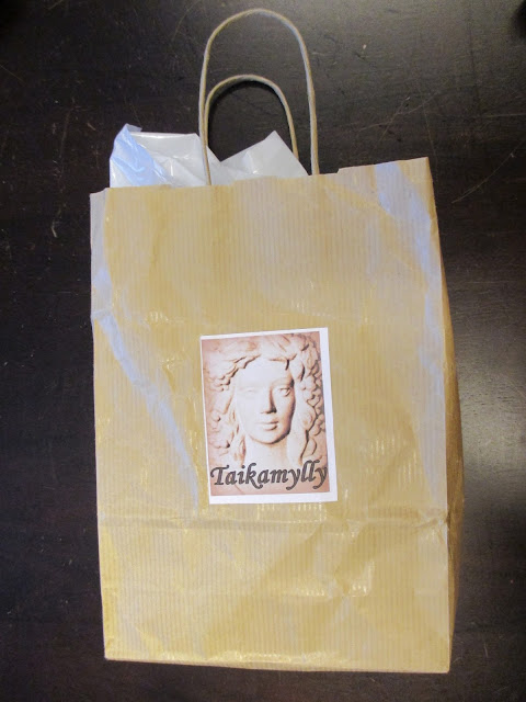 Tässä ne tuliaiset, mitkä eivät tule myyntiin, vaan itselle. Messuilla(kin) on tärkeää, että pakkausmateriaali on kivaa ja että siinä näkyy myyjä. Jälkeenpäin on mahdotonta tietää, keneltä tämän ostin. Olin kuitenkin sitkeä ja löysin kuitin, josta ilmenee, että myyjä on Figulus.