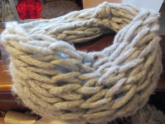 Ensimmäinen tuubihuivi on tehty ranteilla neuloen, siihen kului aikaa tuskin kymmentä minuuttia enempää. Yhdestä 100 gramman kerästä tuli tällainen yksinkertainen.