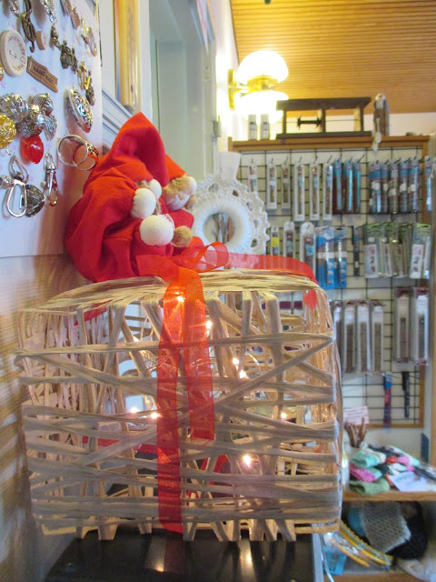 Todentotta, kyllä ne narut laatikon muodossa pysyvät! Sitten vaan koristellaan. Sisälle valoköynnös ja päälle lahjanauhaa…