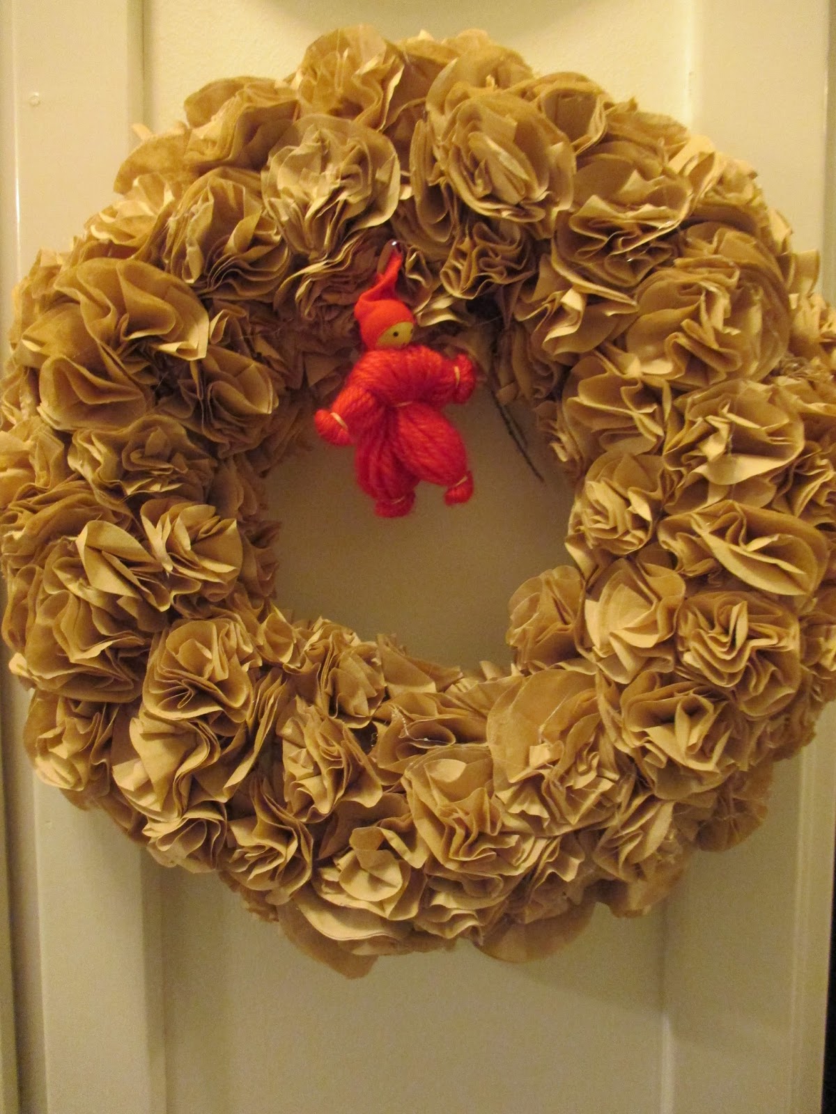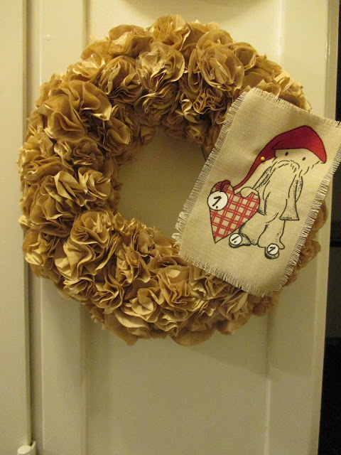 Eilen tein ja näytin täälläkin suodatinpussikranssin. Innostuin vielä vähän koristelemaan sitä. En kylläkään ole varma, onko sittenkin parempi ilman mitään koristetta.