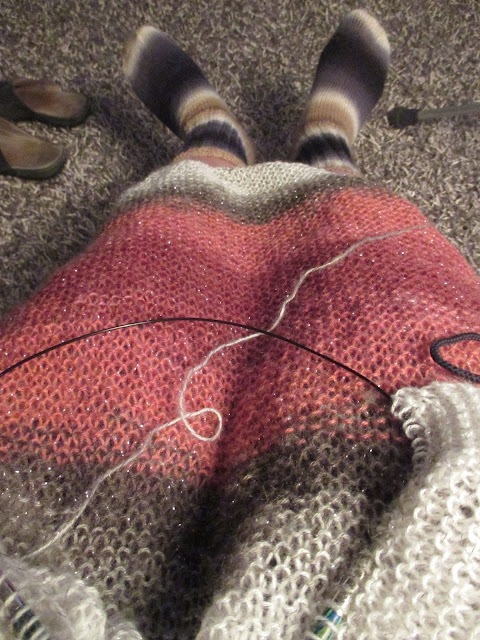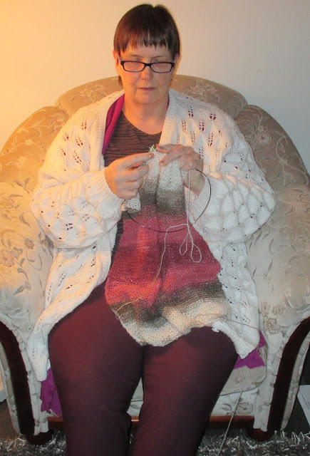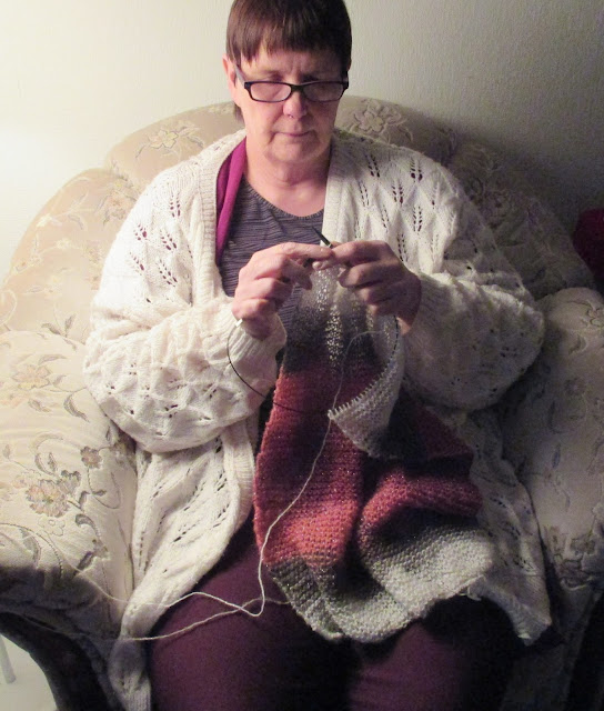 Nyt olen jatkanut aiemmin aloittamaani huivia. Malli on ihan perustylsä ainaoikein pitkänmallinen, kun en siihen hätään viitsinyt mitään muuta etsiä. Piti vaan äkkiä saada käsitys langasta ja sen raportista. En sitten millään tykkää neuloa paksuilla puikoilla. Ja aina oikean neulominen on myös minulle työlästä. Mutta kyllä tästä aika kiva huivi tullee…