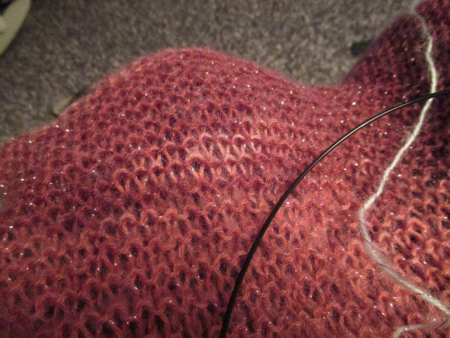 Puikkoina minulla on tässä työssä KnitPicksin pyöröpuikot vaihtopäillä. Tosi hyvin toimii tuo liitoskohtakin, ei ollenkaan tartu tai aukeile ja kaapeli on hyvin mukautuva.