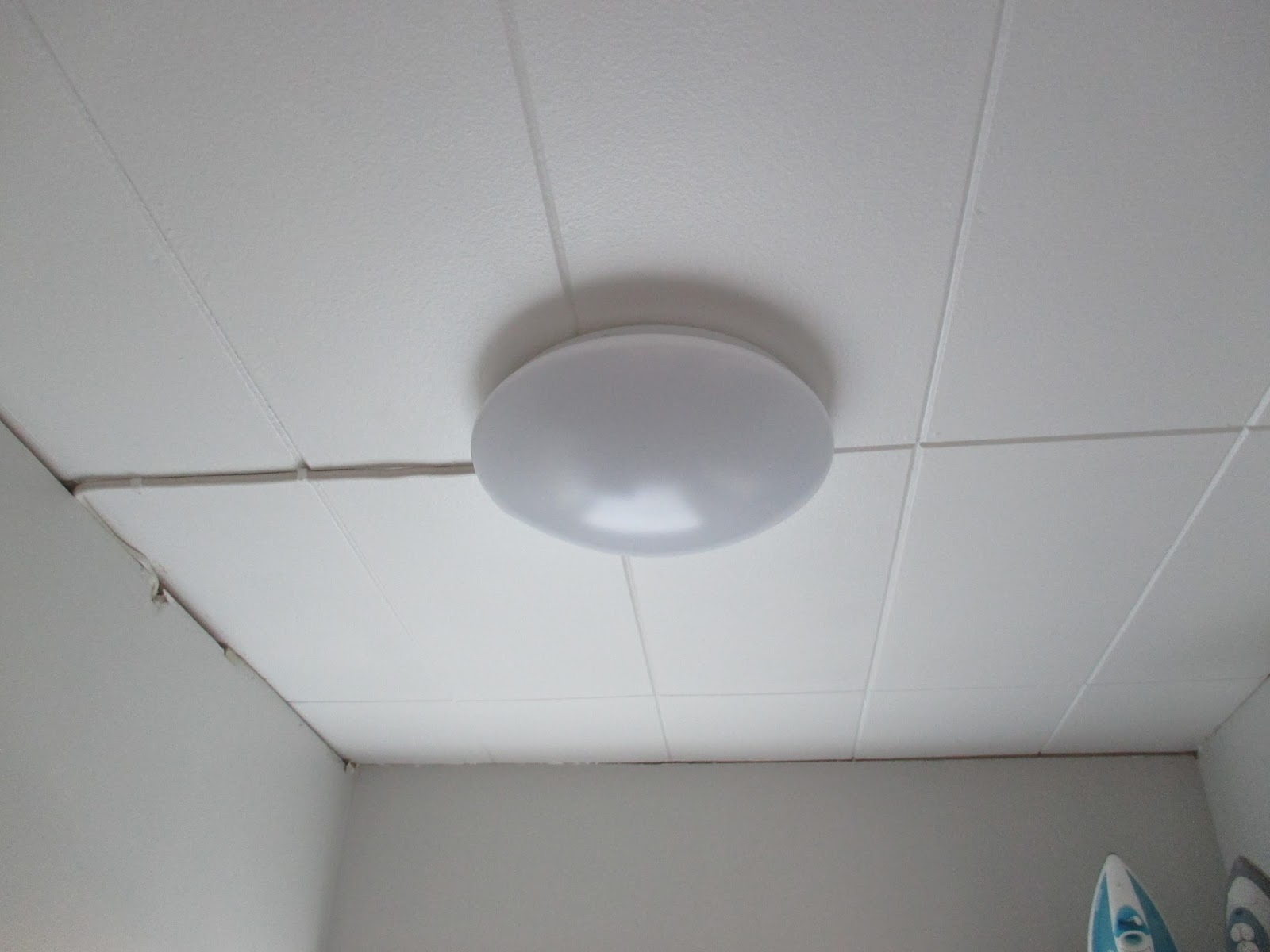 Sähkömies muisti plafondit, jotka hän oli laittanut meidän kodinhoitohuoneeseen. Ne ovatkin hyvin tehokkaat – ainakin näin pienessä tilassa.