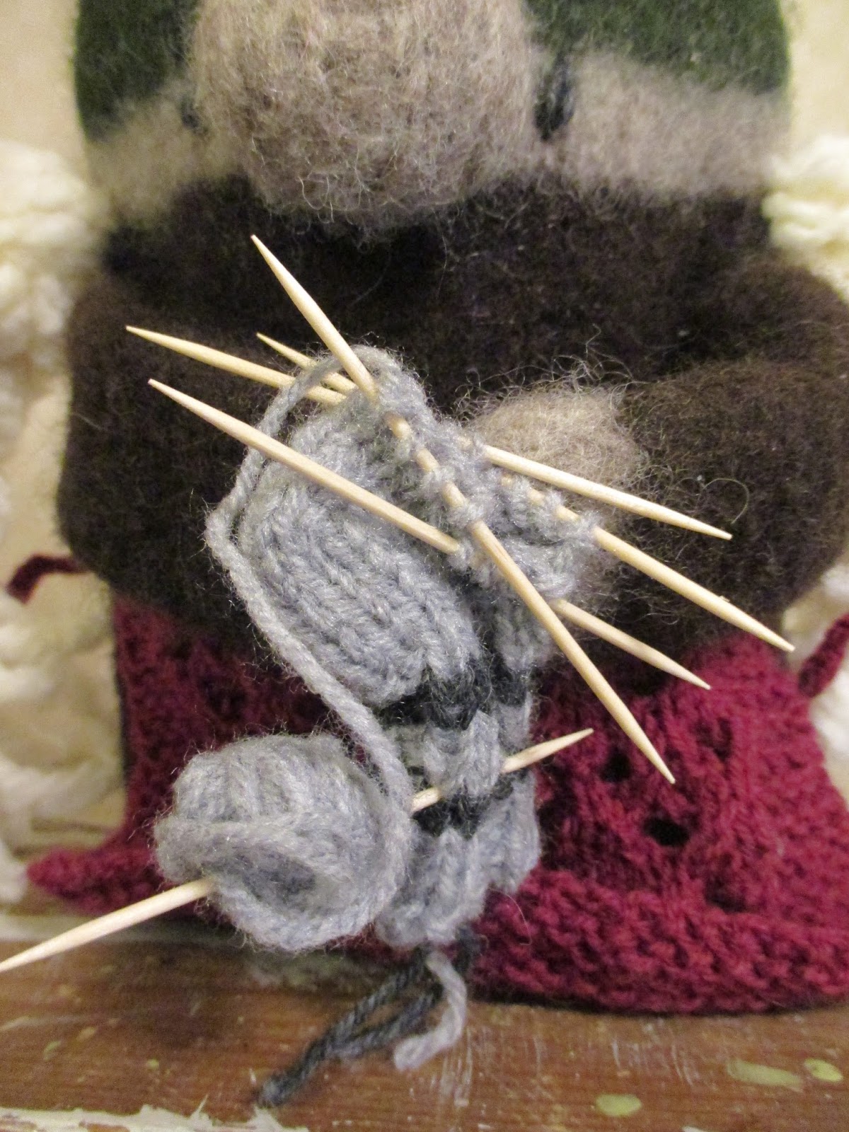Kädet tehdään myös yhtenä pötkönä ja liitetään vartaloon huovuttamisen jälkeen.