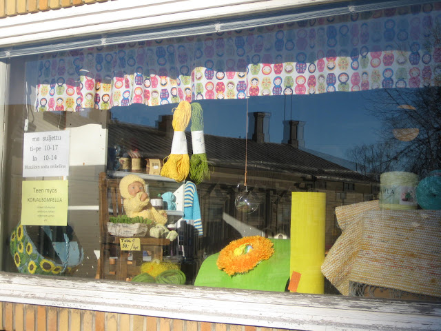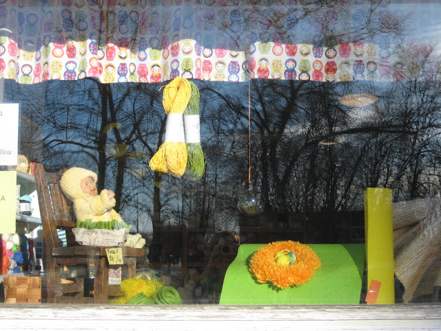 Minulla on ihana työ. Kaikkein ihaninta putiikin pitämisessä on suunnitella somistuksia. Tänään oli siis kiva päivä, kun rakentelimme yhdessä avustajan kanssa keväisen näyteikkunan.