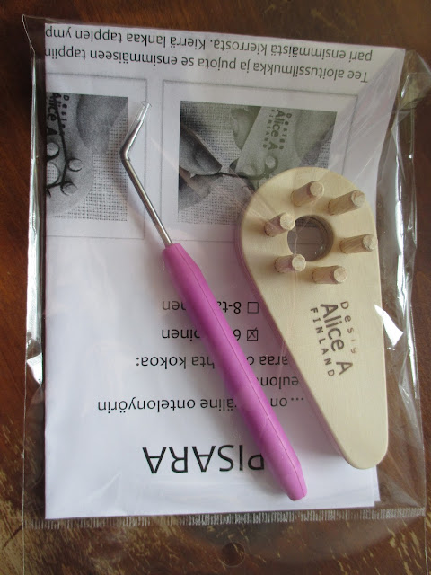 Alice A:n osastolta ostin myös tällaisen välineen, millä saa tehtyä nyöriä. Toisenlainen minulla jo onkin myynnissä. Tämä on vaan pienempi ja sain idean tehdä nyöriä vaikkapa muurausnarusta tai Espica-langasta. Vaihtoehtoja ainaisille paperinarunyöreille.