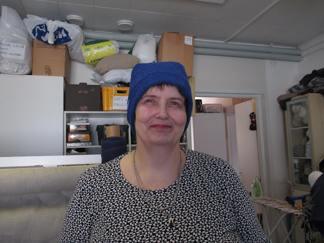 Sen sijaan harjoittelija sai harjoitusta kaavan tekemisestä ja muokkaamisesta ja niinpä tänään valmistui ensimmäinen myyntiin tuleva saunahattu. Niitä aina silloin tällöin kysytään, eikä minulla ole pitkään aikaan ollut myynnissä – muutamaa huovutettua lukuunottamatta.