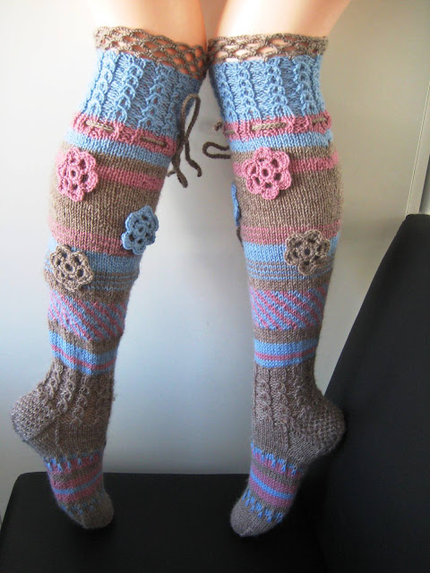 Kaikkein paras tunnustus käsityöläiselle on se, kun asiakas palaa tilaamaan lisää. Pitsipolvarit tilannut facebook-asiakkaani halusi nyt toisenlaiset polvisukat. Näissä on ehkä häivähdys nyt niin kuuluisia ”anelmaisia”, mutta eivät ollenkaan ole samanlaiset.