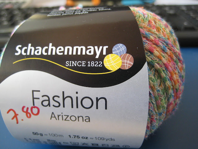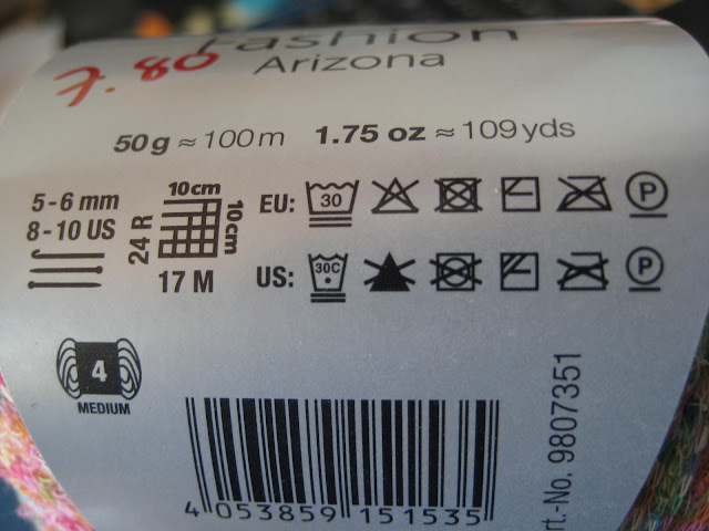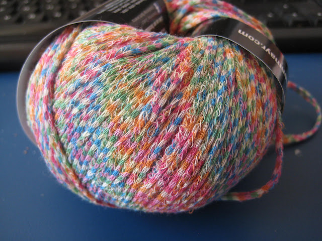 Tässä kerällä näyttäisi siltä, kuin langassa olisi leveämpää raitaa, mutta ainakaan huivissa se ei tule esille. Neule on tasaisen kirjavaa.