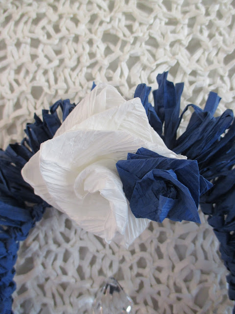 Toinen askartelu, minkä osaan vain teoriassa, Veera näytti käytännössä. Se on tuollainen leveästä paperinauhasta tehty kukka. Se sopii mainiosti tähän kranssiin. Sensijaan en ole aivan varma tuosta prismasta, minkä laitoin keskelle roikkumaan.